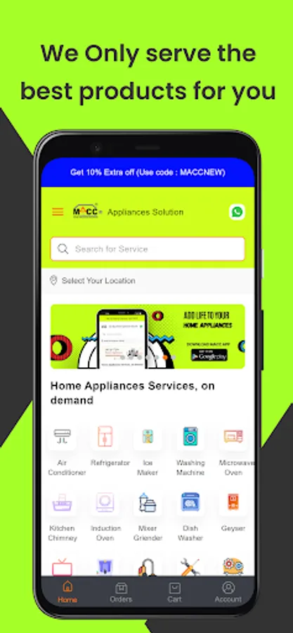 We provide Home Appliances Services on demand like Air conditioner service, Refrigerator, Ice maker, Washing machine, Microwave Oven, Induction Oven, Kitchen Chimney, Mixer grinder, Dish Washer, Geyser, TV, Water purifier, Vacuum cleaner, Installation service , Repairing Service etc.