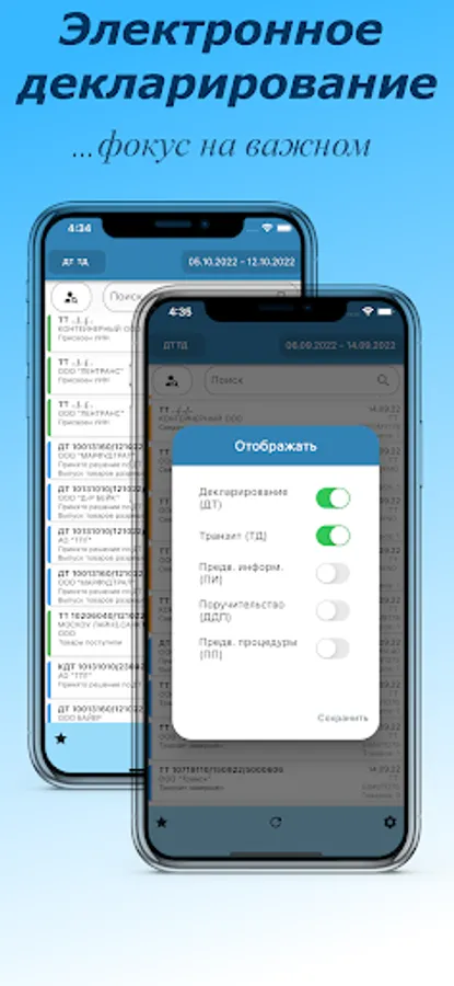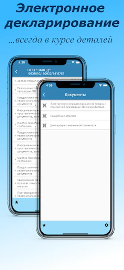 The application allows you to track customs clearance procedures through the information operator of the Federal Customs Service "Sigma-Soft" LLC.
