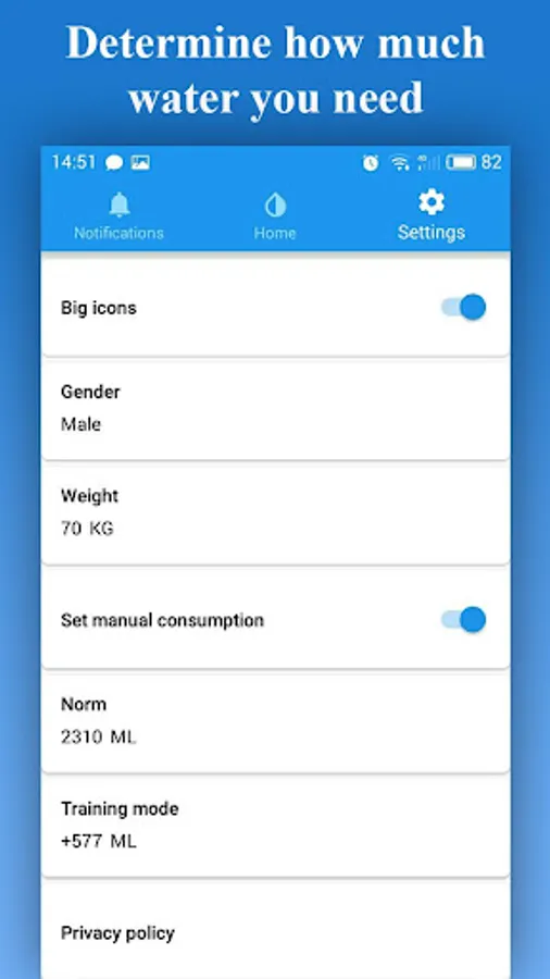 A reminder will help you to drink water on time, as well as to improve the body's water balance, to lose weight and to improve metabolism.