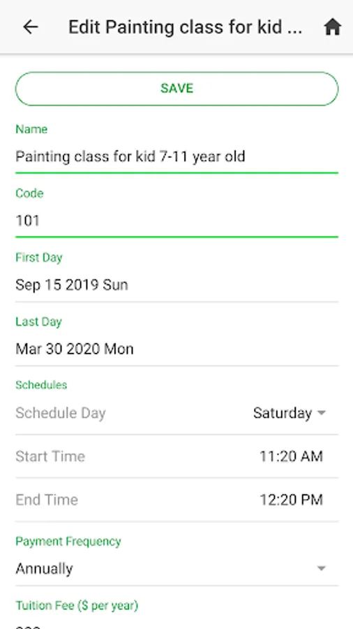 The Simply School App tracks all payments or charges, calculates tuition fees automatically and records attendances fast and simply.. The app works on phone, tablet and computer with data auto-synced in background through all devices. Allow four types of payment frequencies: annual lump sum payment, monthly, every 3 months, or every 6 months. Dynamically display upcoming classes on the home page that give you a shortcut to record attendances and view balance easily and quick.