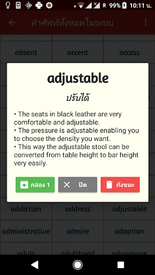 The Flashcard app helps to learn English vocabulary, to prepare for O-NET exams, to enter university. Compiling of more than 3,000 English words, which was certified by ONET m 3 in the year 2560 as summarized. App. In the app. Include translations, sample sentences. And pronunciation (with sound)