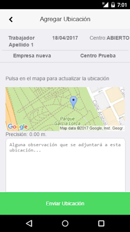 The application also includes an option for workers who have their roaming terminal to indicate its position, so that the company can know at all times the situation of the same.