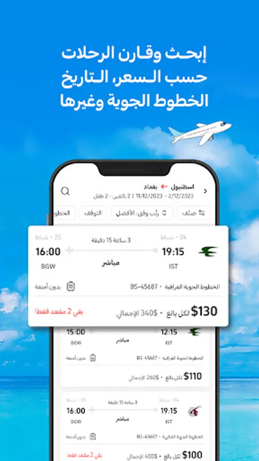 • Flight Search: Easily search for flights to any destination within and outside Iraq.