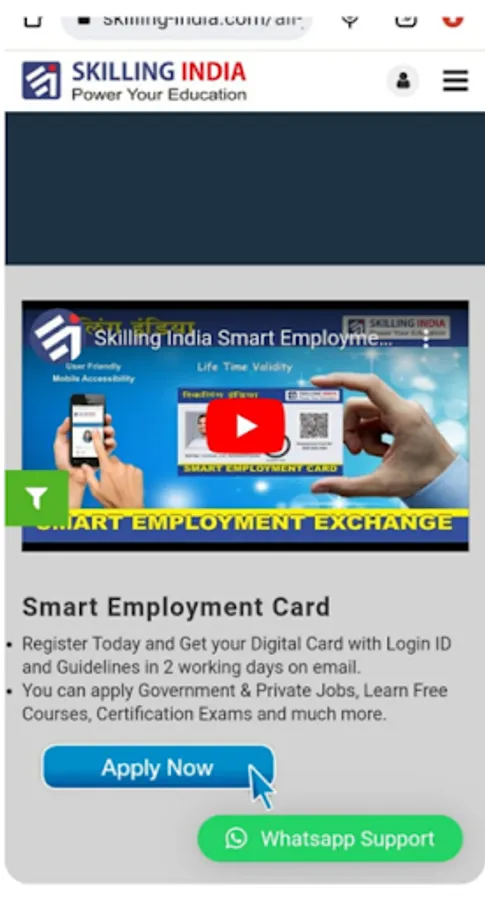 The Smart Employment Card Registration for Job Seekers, Career Aspirant Students across India. This Card is a specialized document that showcases a job seeker's skills, qualifications, and professional achievements to potential employers. Registration with Skilling India helps candidates for easy access to job opportunities, free online courses, resume writing support, enhanced visibility to employers, and improved credibility in the job market.