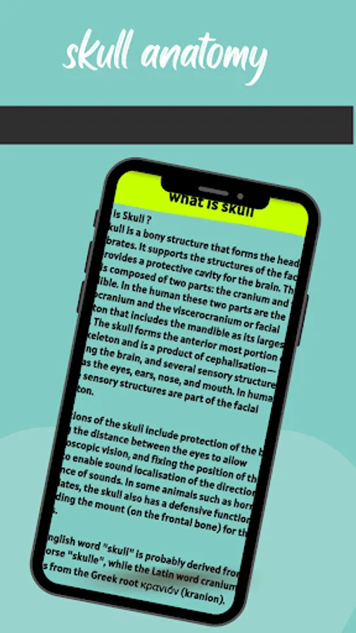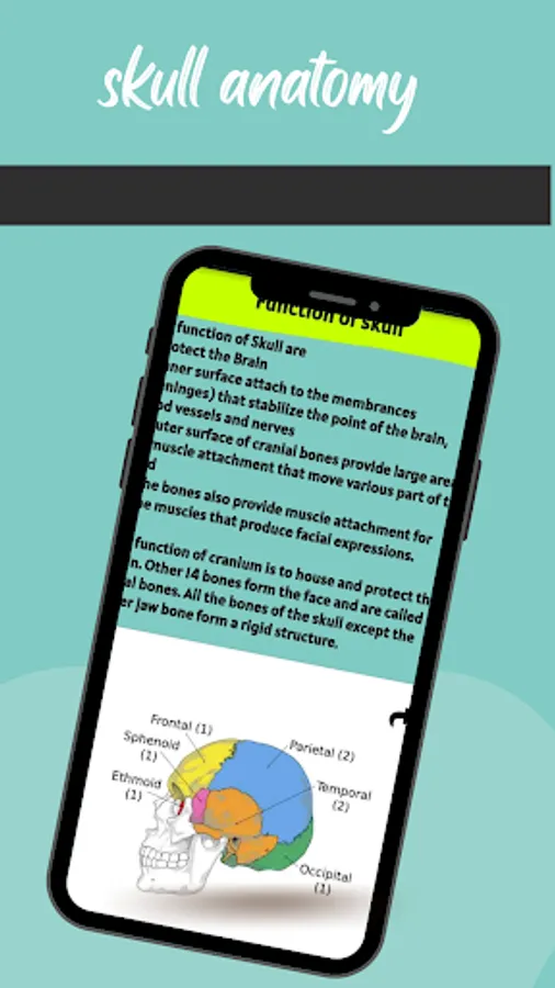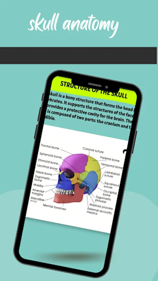 Besides the 3D graphics, the app contains illustrations and diagrams to help better understand the anatomical structure of the skull. The app also contains interactive quizzes and exercises to assess the user's understanding of information and help improve familiarity with the skull and its anatomical structure.