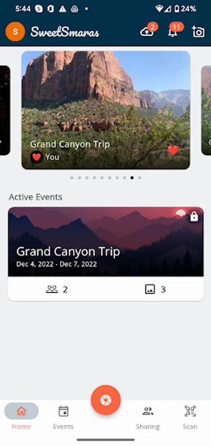 Smara means memory in Sanskrit (ancient Indian language). Create and easily share the sweet Smaras you have with your friends and family. Smara let's you view your memories not just with your eyes but also from the eyes of your loved ones who were part of those memories. Imagine you are going on vacation with your friends and family. Everyone with a cell phone will click pictures to save the memories as they happen. At the end of the trip, it is always cumbersome to share these pictures with all that you created the memories with. Use Smara to invite your friends and family to a virtual event and once they accept your invitation, all the pictures they click using Smara get automatically shared with all the loved ones who are part of the event. No more extra steps needed for any of you to share your memories. What's more?! Smara also shows you a slide show of the pictures, live as they come in so you don't have to wait till the end of your trip to see what everyone else captured!