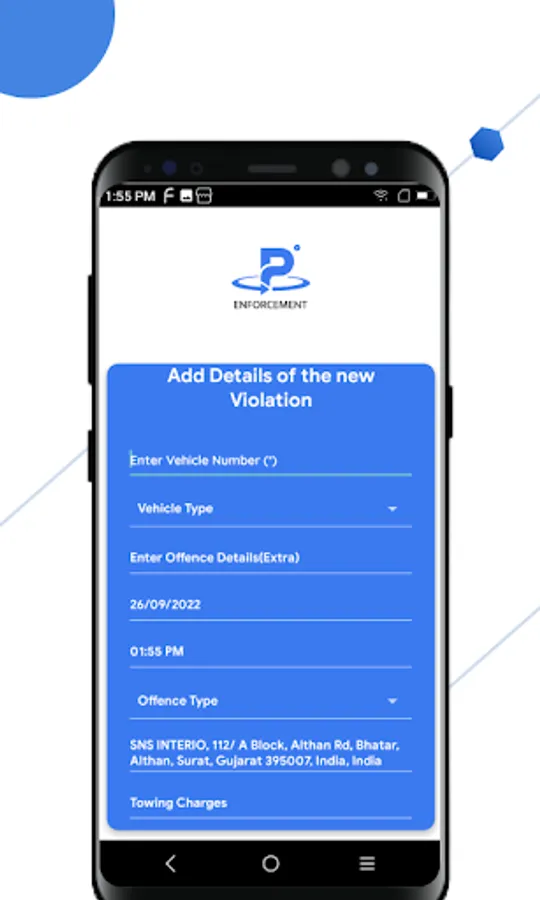 The app also allows for manual entry for any vehicle that is illegally parked or any other offences.