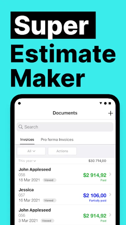 Our SUPER ESTIMATE MAKER is one of the most simple app that allows you to create estimates quickly. It’s an intuitive, functional and efficient app for small and large businesses and for all entrepreneurs, contractors and freelancers who need to have all estimates in one place. In addition, it’s an easy-to-use app that can be used on the go by for anybody who needs a quick invoicing solution.