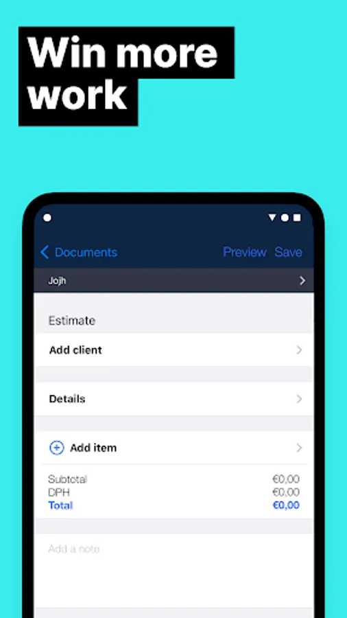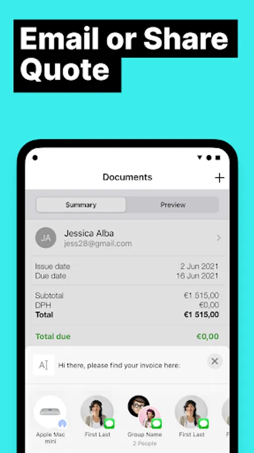 - Create and send professional estimates to customers quickly and easily