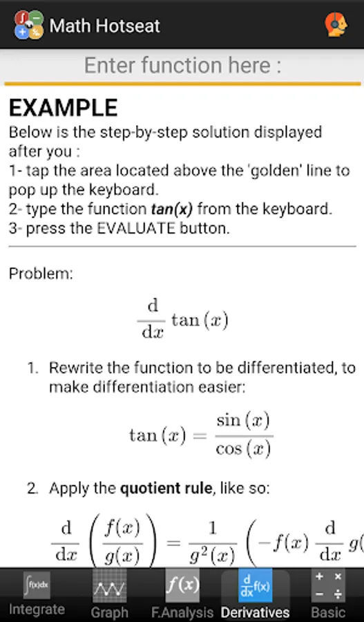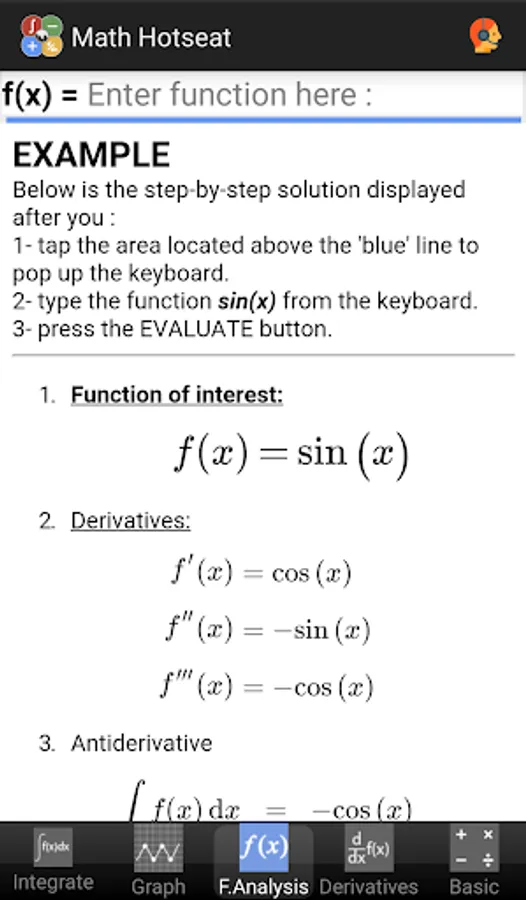 - effortlessly get detailed step by step working for function analysis, statistics, integration and differentiation questions.