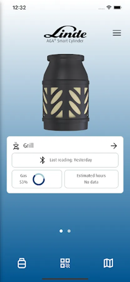 Check the level of your AGA Smart propane bottle with your mobile phone. Connect the bottle to the app by reading the QR code on the bottle, so there you go.