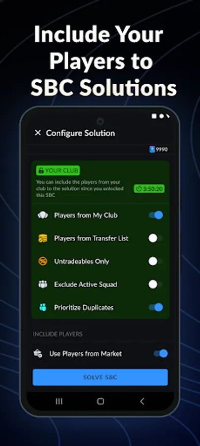 New players are added to Smart FUT as soon as they appear in the game. Explore all players and include them in SBC solutions.