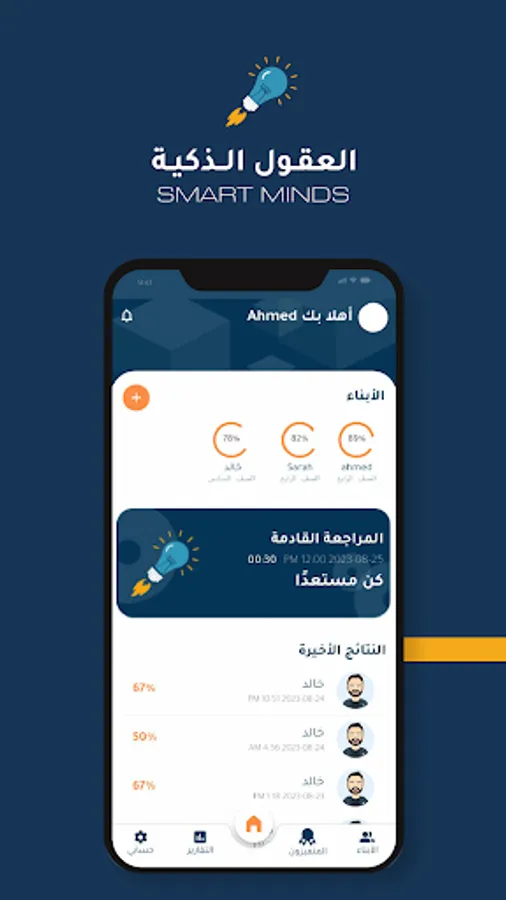 ( تطبيق العقول الذكية ) مراجعة يومية للدروس بأسلوب شيّق و جذاب وهو حلقة وصل بين الطالب والمعلم و ولي الأمر.
