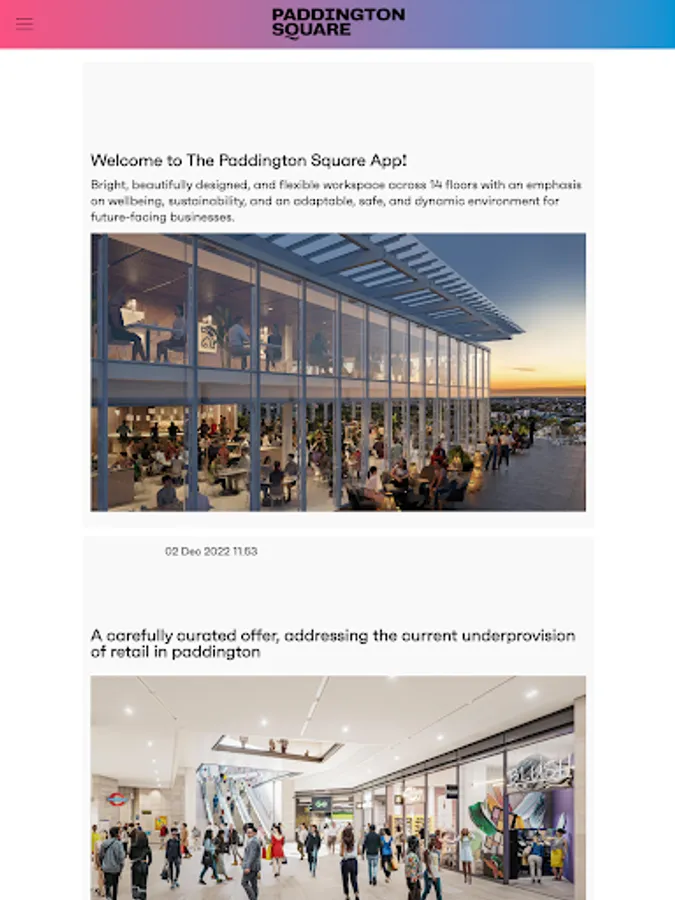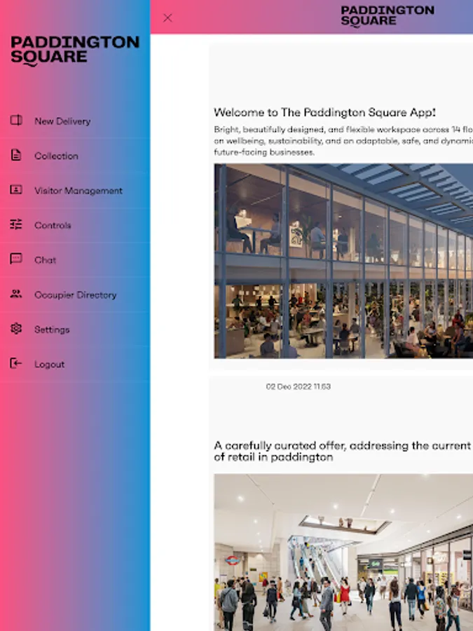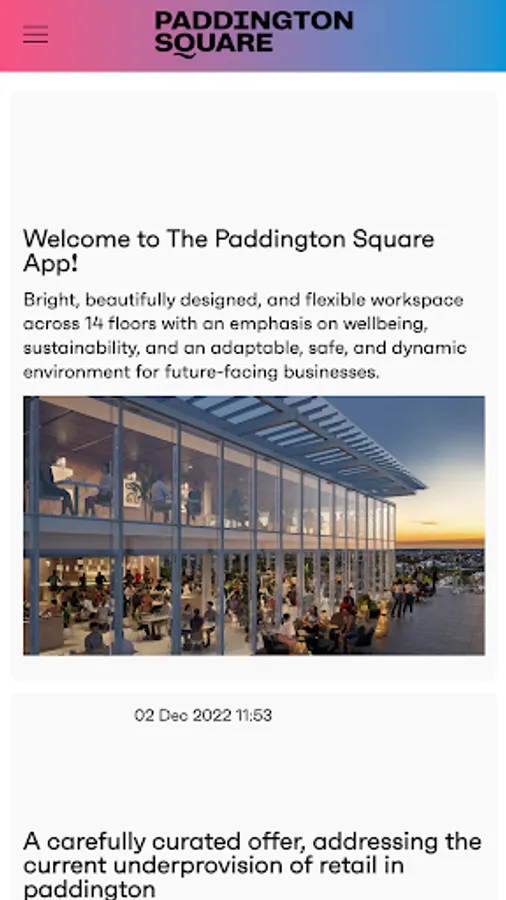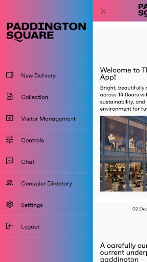 A smart workplace application for Users to access building support, events, lifestyle and concierge services as well as integrated Access Control and QR Code based Visitor Management, for Users and their guests to the access Paddington Square building using their smartphone.