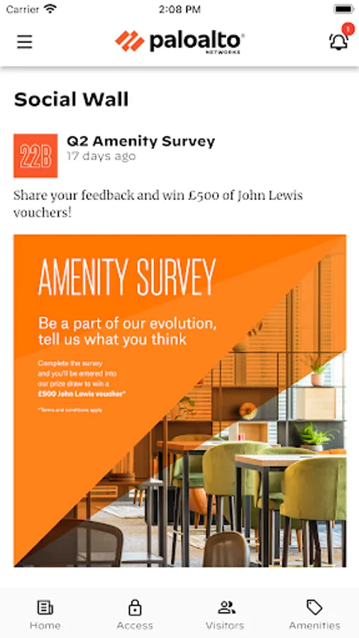 Provides mobile access and visitor passes for users and their guests, along with a social wall and events calendar to stay up to date with the latest building news.