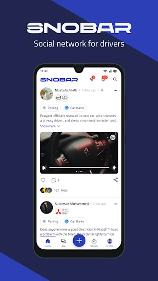 Design a garage for your car, upload its photos, and enter its color, engine type, gear type, additions, and features of it, so SNOBAR provides a space for you to post your diaries, share your photos, and interests, and a (Garage) dedicated to your car, so you can mention it in your posts and questions, and enable others to know more about the car you own.