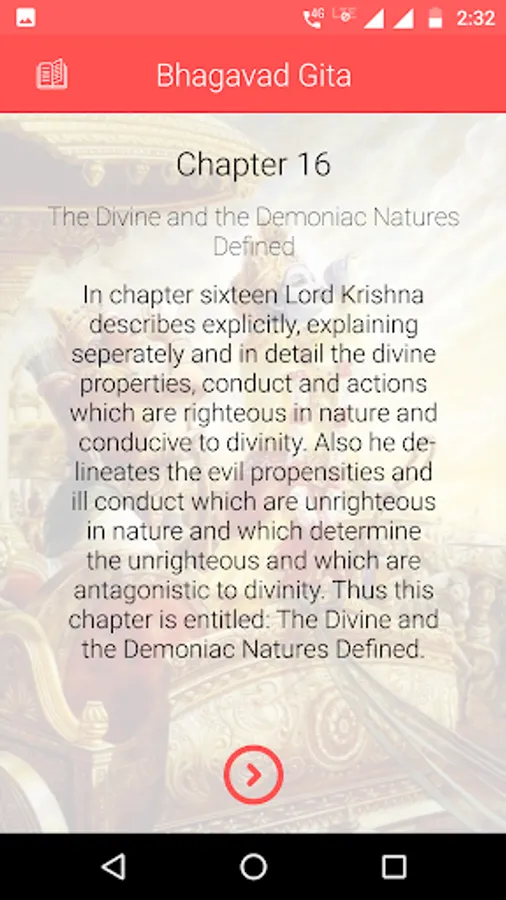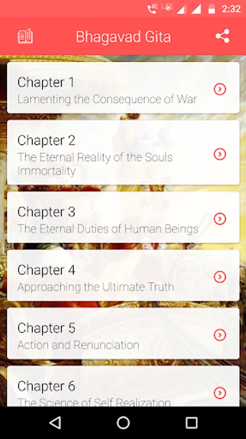 • Share feature to easily send your favorite Bhagavad Gita shloka/verse to your friends
