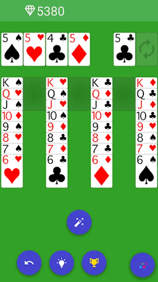 + Any movable card may be placed on a card next-higher in rank if it is of opposite color.