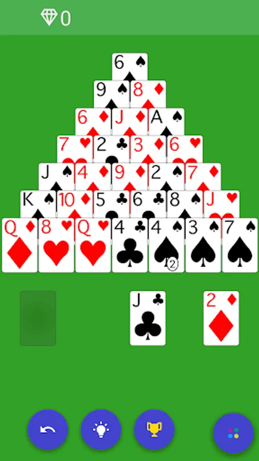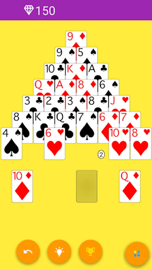 The object of the game is to remove pairs of cards that add up to the total of the highest card in the deck from a pyramid arrangement of 28 cards.