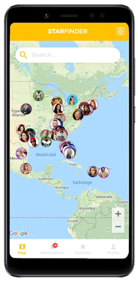 You will have a map with your current location and you will see the Celebrities around you in the World!
