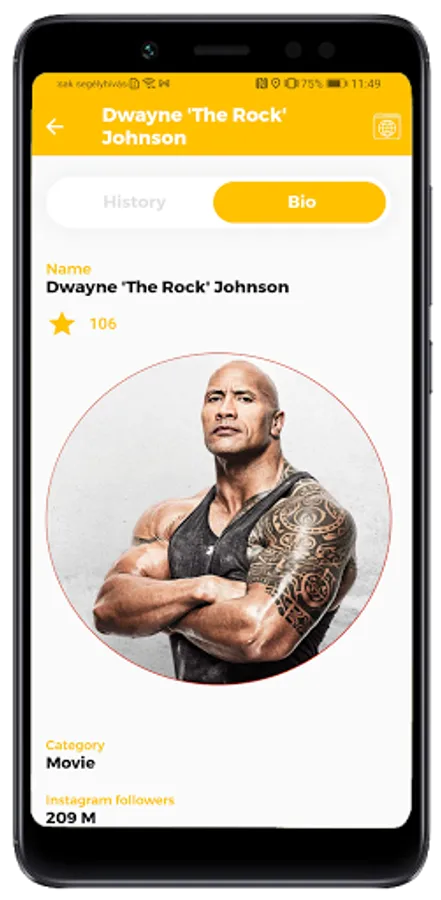Starfinder will also show you their biography with information on number of Instagram followers, residence, marital status, partner, net worth, etc..