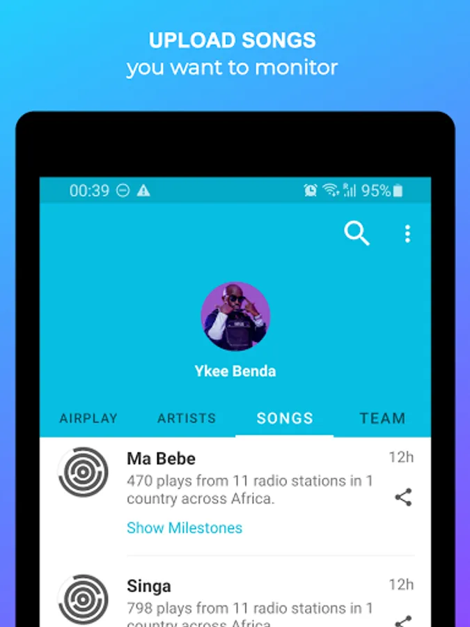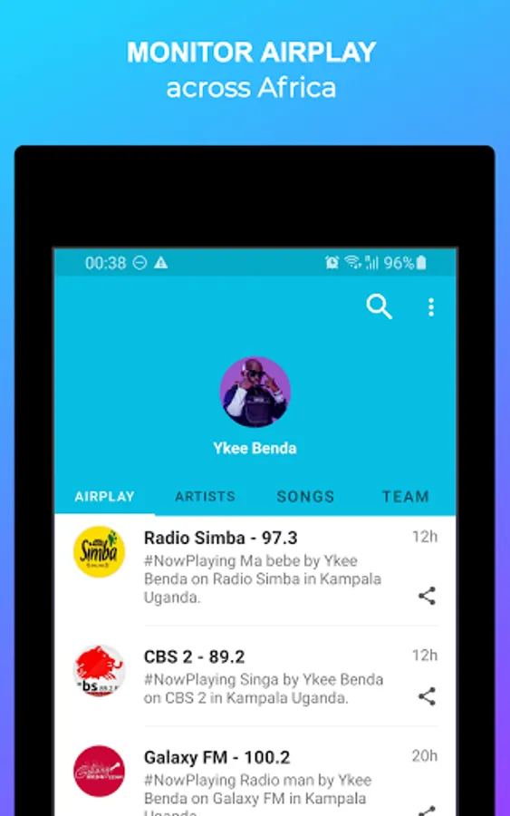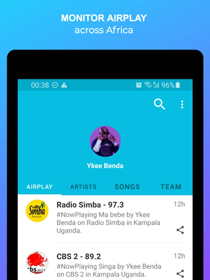SongBoost is an airplay tracking app for Africa. With these 7 key features, the SongBoost app helps musicians, managers, and labels efficiently track their music on over 300 radio and TV stations in 8 countries in Africa.