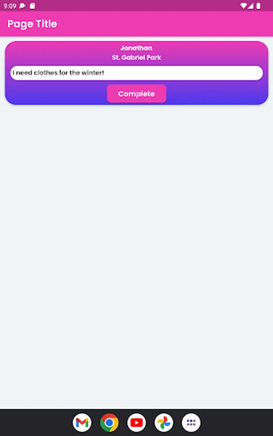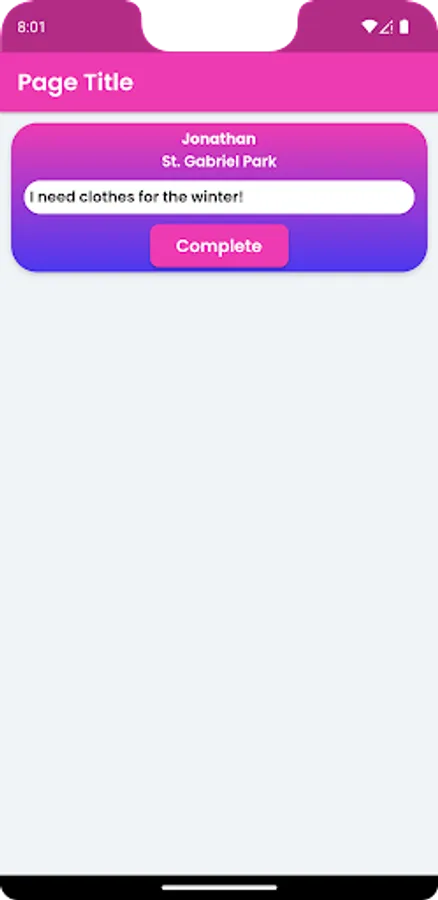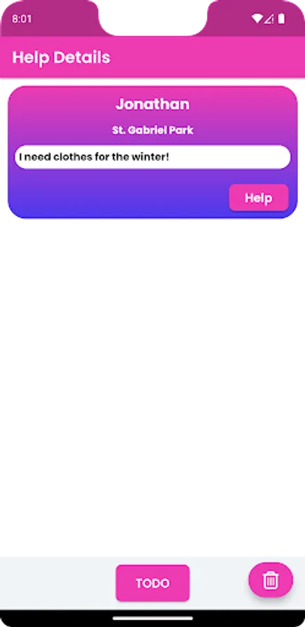 AssistMe! is an app for volunteers that will help you get connected with the homeless. Open up the app and you can see a quick TODO list of requests from the homeless that you can accept to help them with.