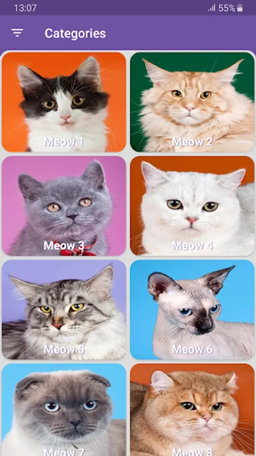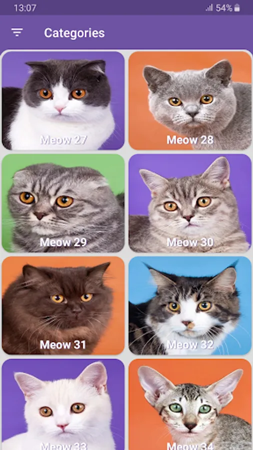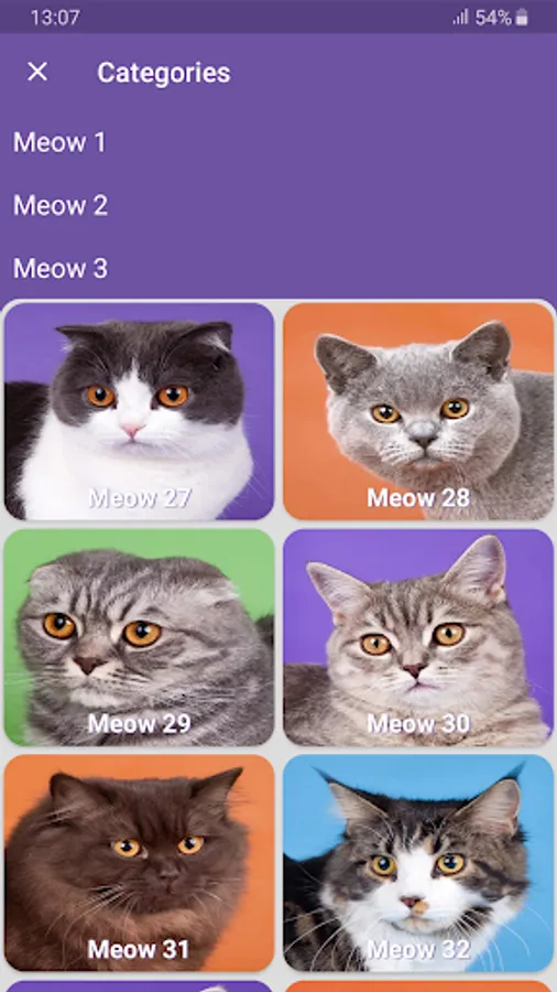 Real Cat Sounds collection that contains cat sounds and cat noises of cat meowing, cat purr, kitten sounds.