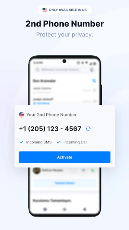 Second phone number service allows you to have a second mobile number that is not associated with your main number without the need for an additional SIM card. Choose your preferred number and start using it right away.