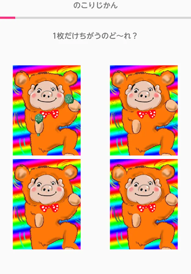 Four pictures are displayed at a time, but only one of them is somewhat different from the others.