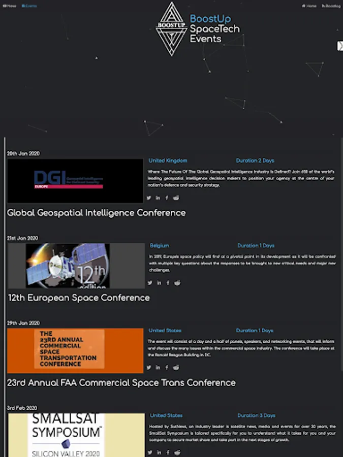 We believe communication among space experts is beneficial to expand human space activities, thus we organize and promote high-level events to update the BoostUp community.