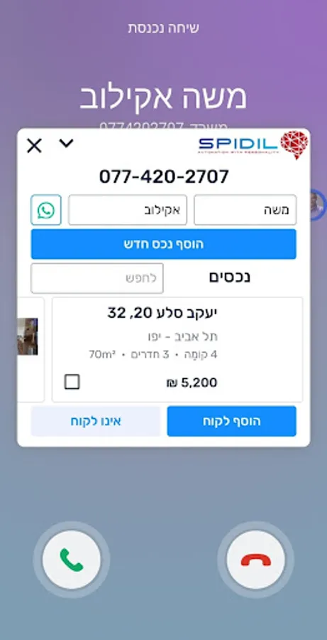 We specialize in developing unique products for the world of real estate brokerage, the company's products help to increase sales and income for brokers significantly. Spidil - the company's flagship product allows the broker to register all the leads that call him immediately and automatically collect all the leads that call him every day in the easiest way, Without the need to copy numbers in a desperate attempt to remember names or numbers or which property the client was looking for, performing quick marketing actions to a huge database of clients at the click of a button, and many other options that make the broker's life easier.