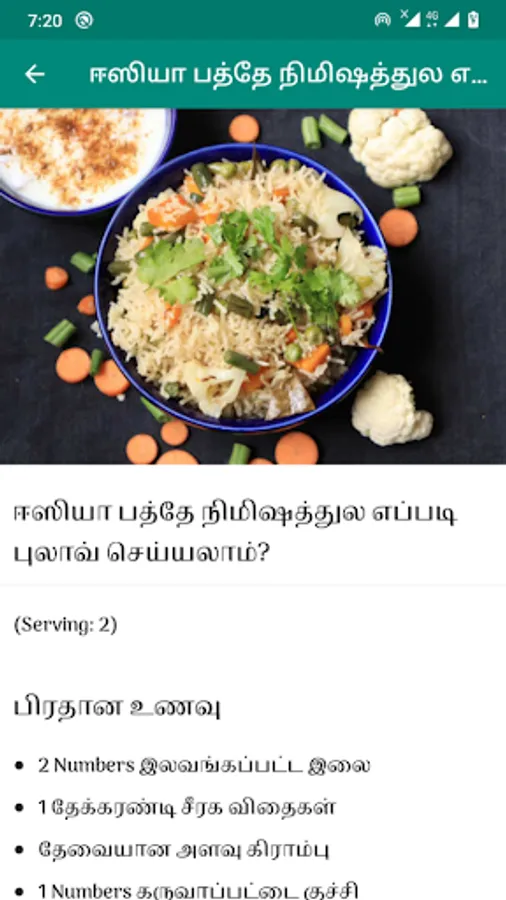 The healthy and useful Tamil Samayal app is a wonderful guide to beginners/bachelors for those doesn't have much experience with cooking, Because all recipes stated in this Tamil samayal Veg and non-veg samayal app are explained in a step-by-step process.