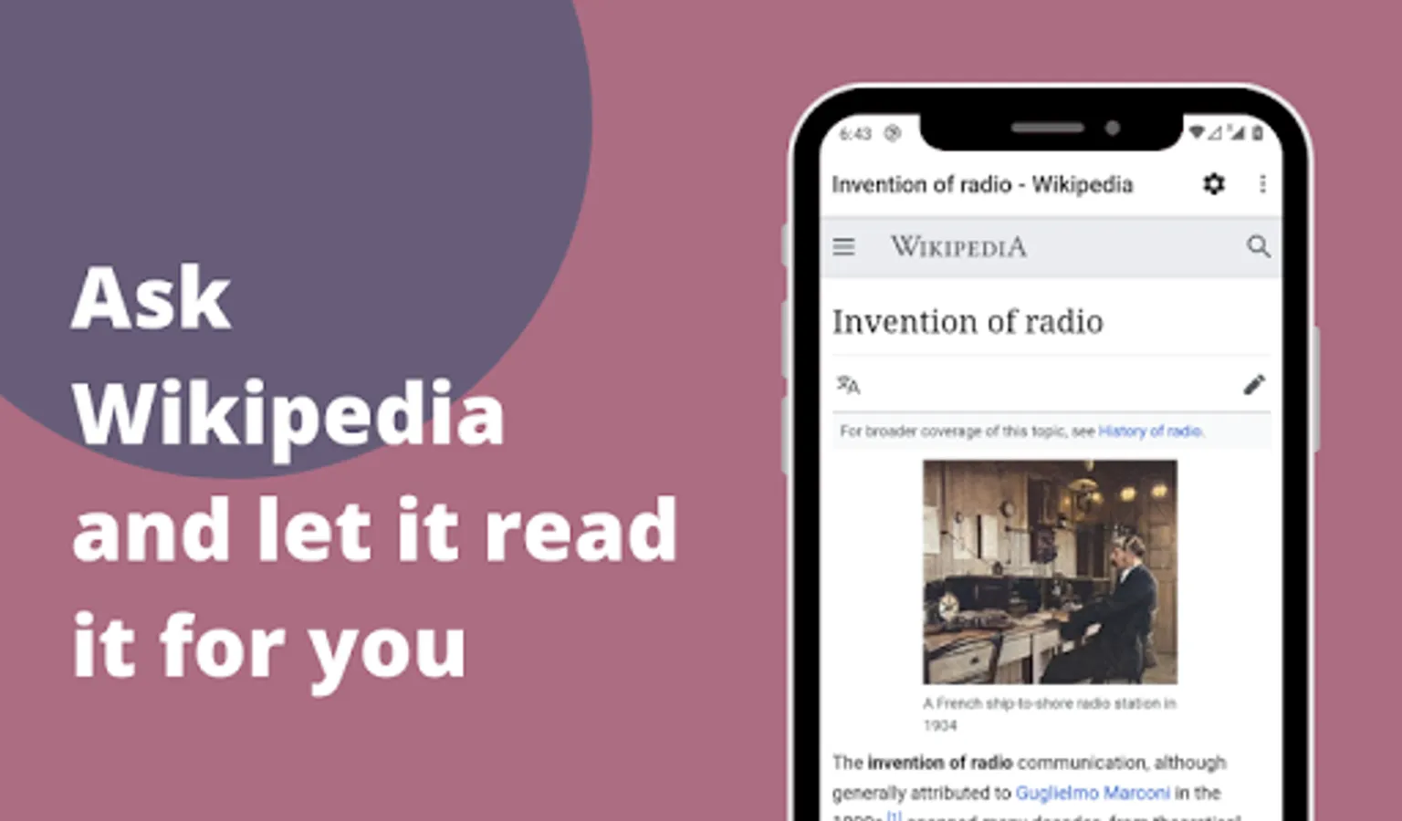 The Wiki Reader can read the whole Wikipedia article for you, so that you don't have to keep staring at your phone screen. Let the phone read it for you.