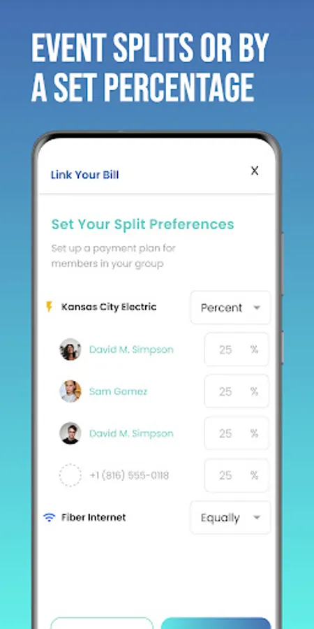 With Splitsy, it's as easy as 1, 2, and 3. Simply create a group to link your bills & friends, set your monthly splitting preferences, and then Go Splitsies! We'll notify the users of their upcoming bills and give them the opportunity to manage their historical bills and payments