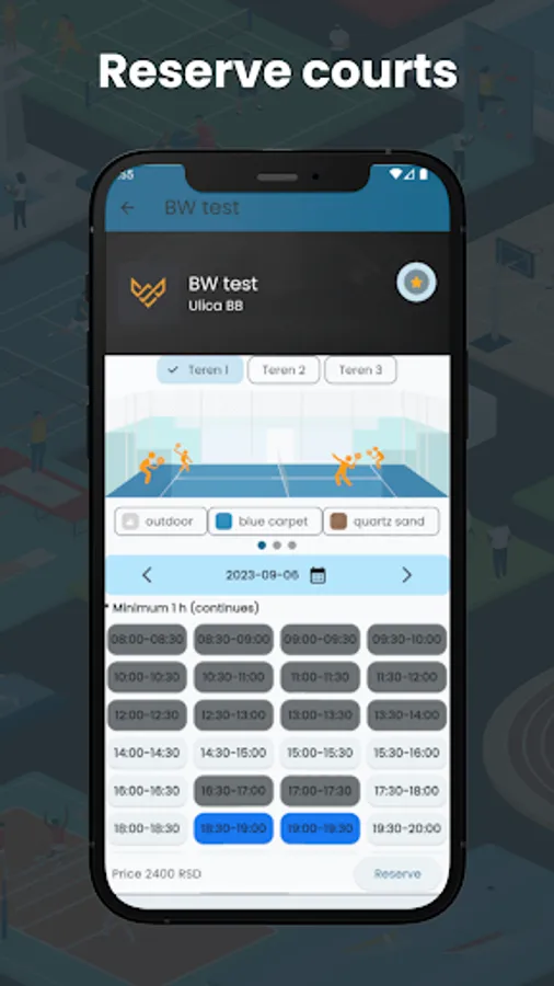 2.Venues tab—This is where you can see all venues that have vacancies. Open any of them to see venue info and availability. Click on the desired time slot and make a reservation without making a single phone call. The upper part of the screen shows you all the venues we especially recommend.