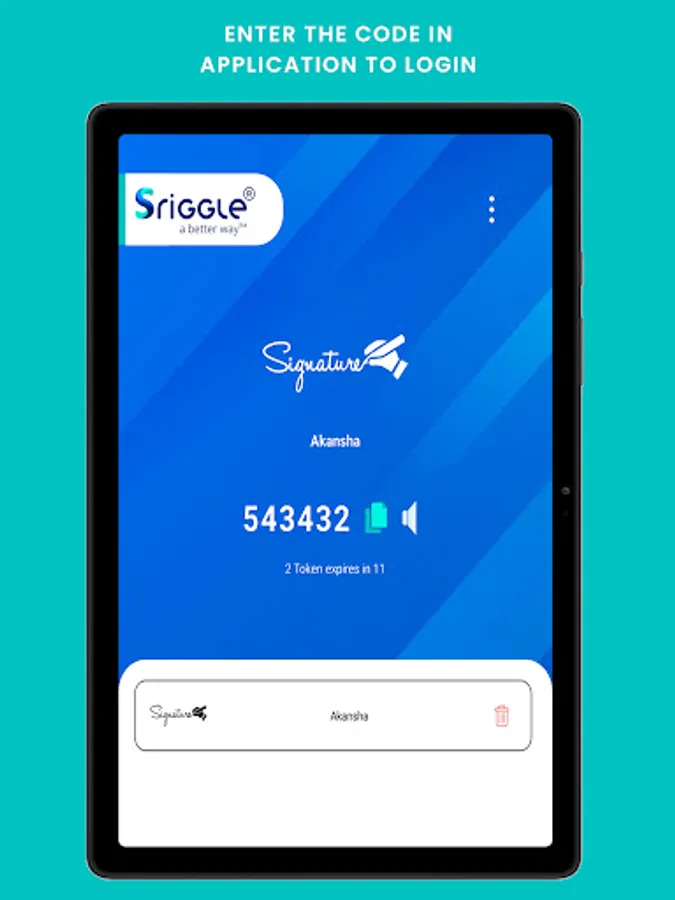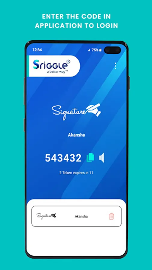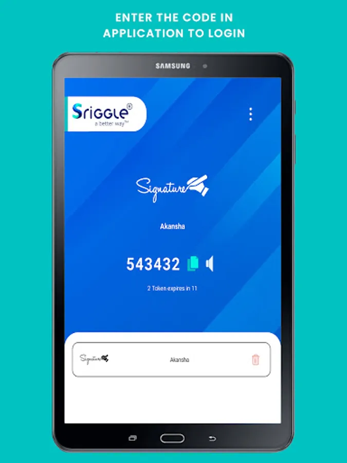 Sriggle Authenticator is a used to generate authentication codes of 6 digit which a user needs to login into Sriggle's applications (Signature, SigniA, SigniP etc). The purpose of this application is to help users with additional security by providing two factor authentication.