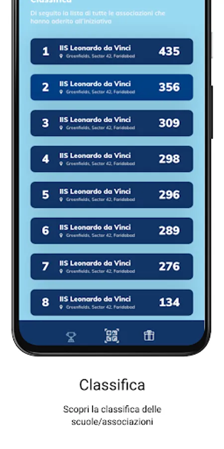Using the app is very simple: after selecting the school you are interested in, simply scan the barcode printed on the back of each voucher and your school will be assigned a point. Help your school to reach a sufficient number of points to be able to claim the prizes up for grabs