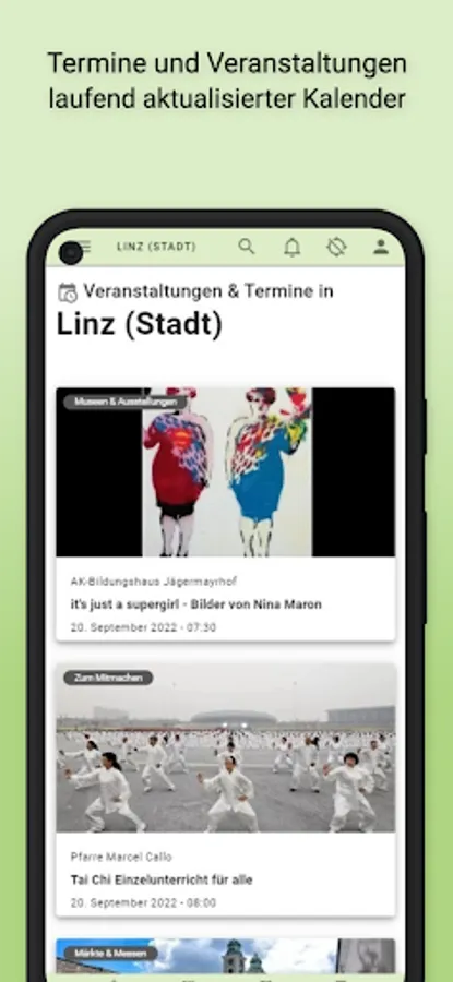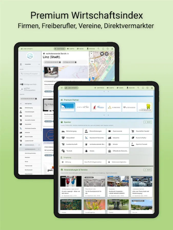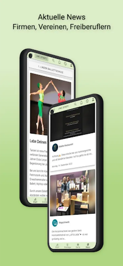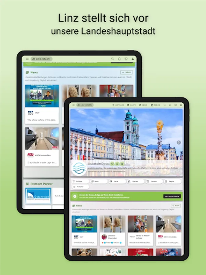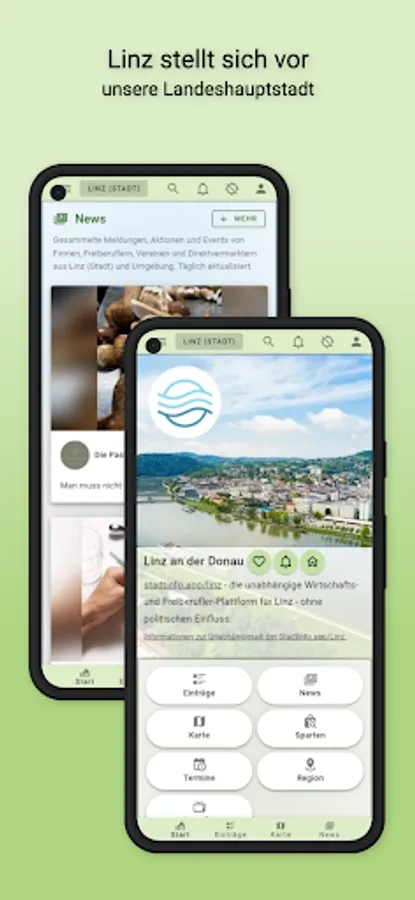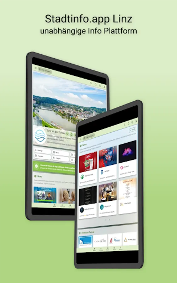 The Stadtinfo.app collects and processes current and local information on the economy, clubs, direct marketing, etc. in Linz. In addition, news, events and dates can be called up.