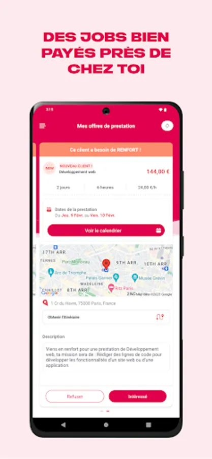 StaffMe Freelance gives you access to hundreds of high-paying jobs every day, available near you and that fit your schedule. Like the 600,000 young freelancers already registered throughout France, receive job offers by notification and accept them only if you want to work. First come, first served !