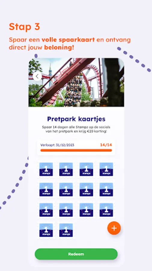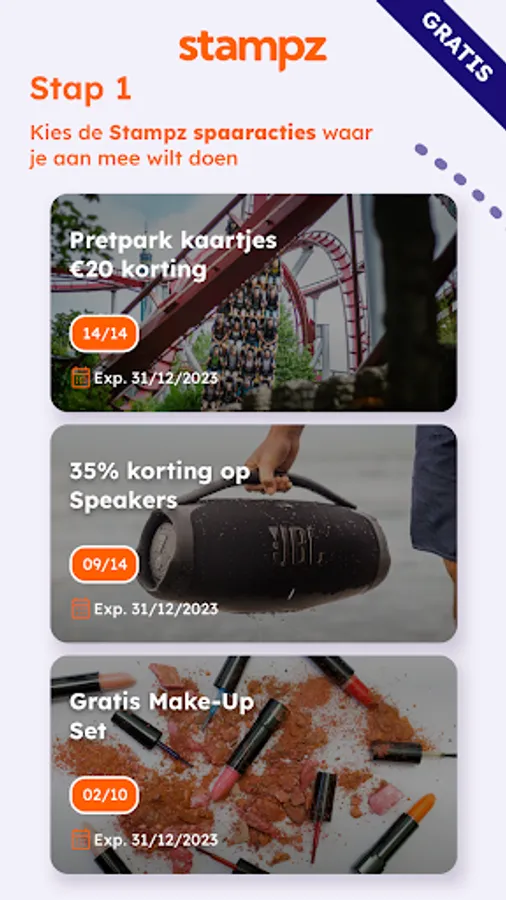 The Stampz savings stamps are easy to earn. When you have saved all stamps and have achieved a full savings card, you will immediately receive fantastic rewards such as discounts on products, trips to theme parks and zoos, free merchandise and much more!