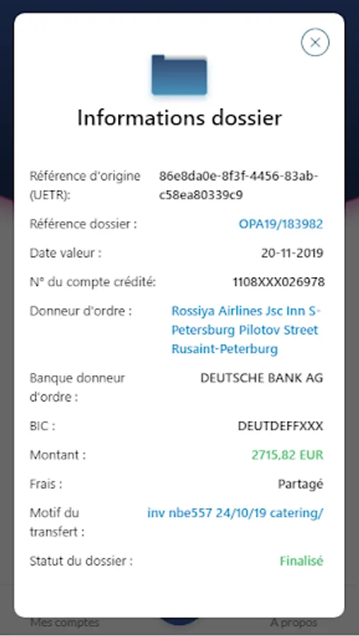 - Consult and download files (the cx5 repatriation certificate, customer opinion, Copy of the Swift, credit notice, ava account imputation, etc.)