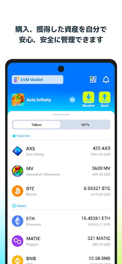Centralized management of assets from multiple chains. Your portfolio bundles together cryptocurrency tokens, NFTs, DeFi positions and GameFi assets.