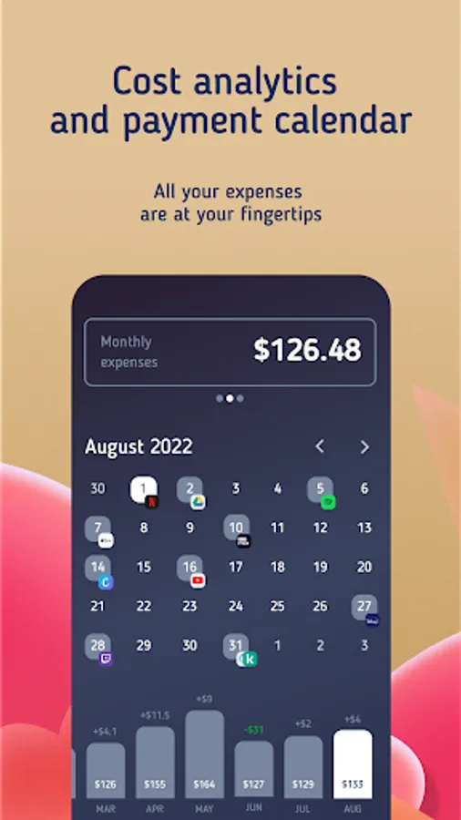 Gain all your subscriptions and fees in one tracker app to control all your recurring expenses, billing date and many other details. No more unexpected payments!