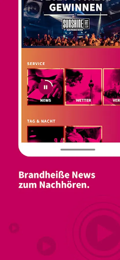 No matter where you are: With the sunshine live app you always get the latest hits and playlists at a glance. You can see where what's going on and where you can celebrate with us in the sunshine live events.