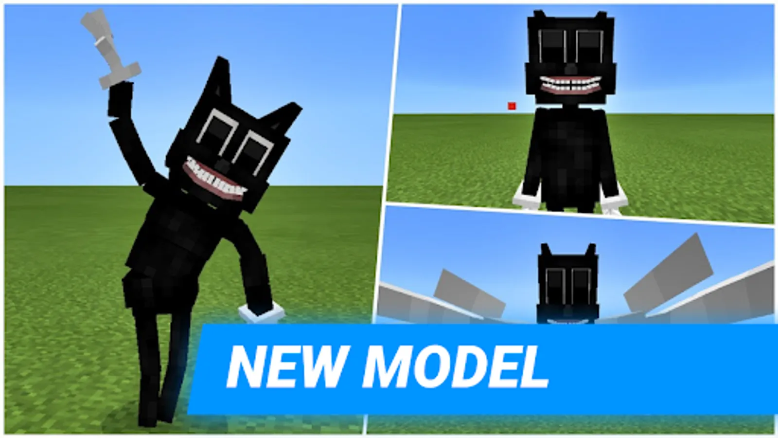 Mod cartoon cat for minecraft - these are new addons for minecraft horror. You have to hide from the cat chasing you. Be careful! A cartoon cat knows where you are and it is almost impossible to hide from him. This cartoon cat mod for minecraft is an analogue of the siren headed mod. You can install 2 mods at the same time and run away from the siren head and from the cartoon car at once.