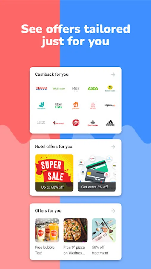 With Tappo, you can find the newest bargains and get cashback from the stores you shop at. Get discounts on groceries from Tesco and Sainsbury, pick up some trendy outfits from Superdry or New Look, score savings on those big brands like Hilton, Nandos, or special little boutiques. Superpower your shopping with Tappo and start saving today!