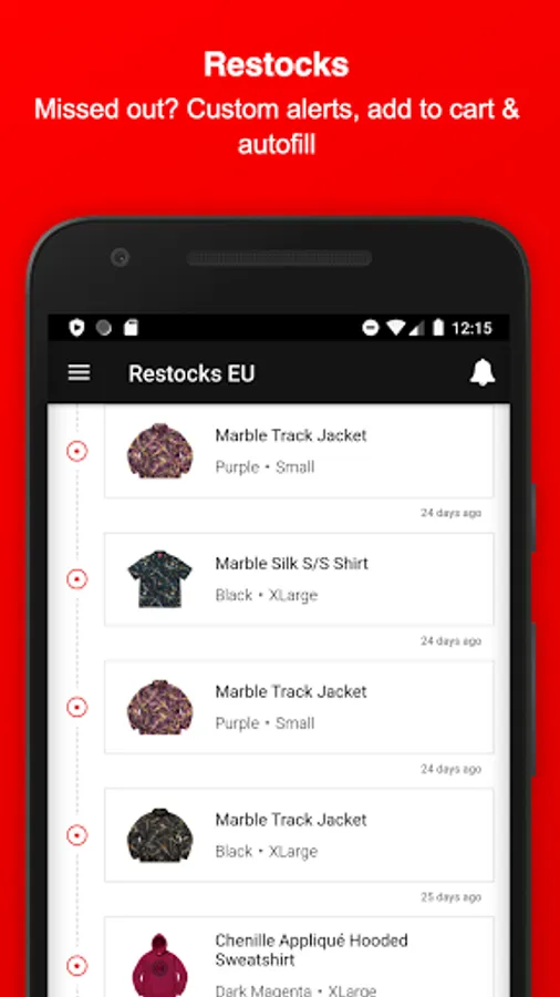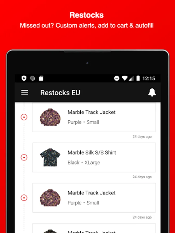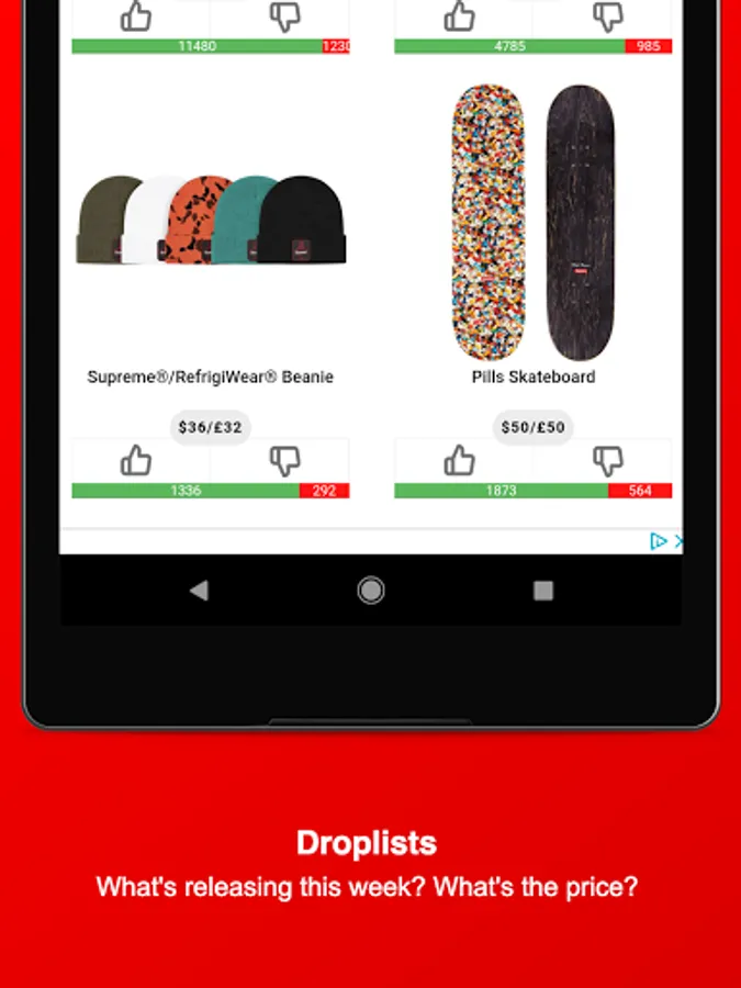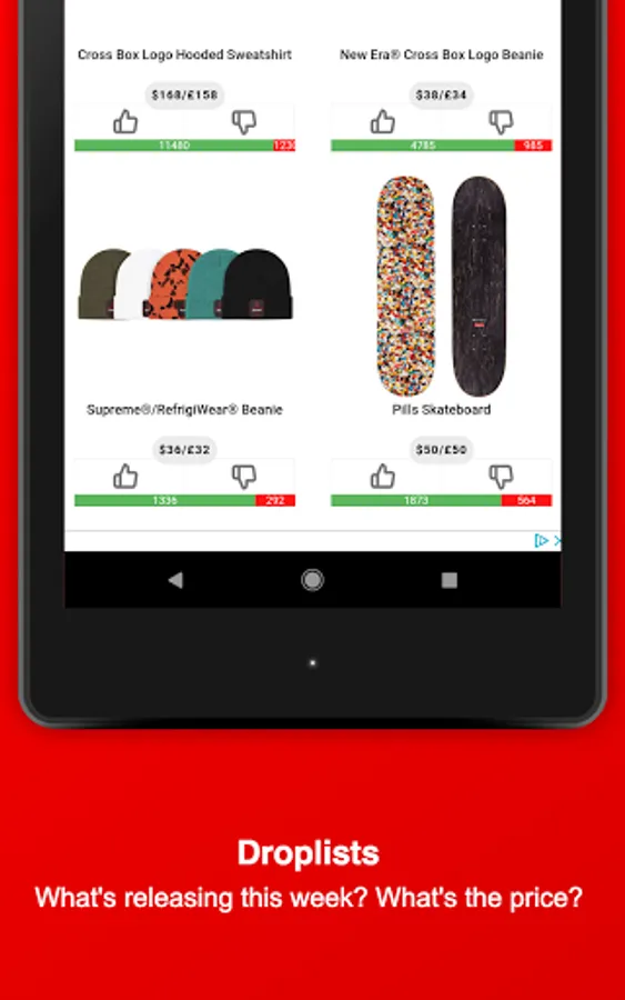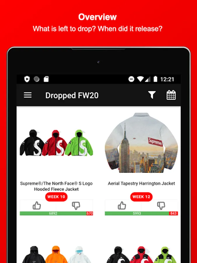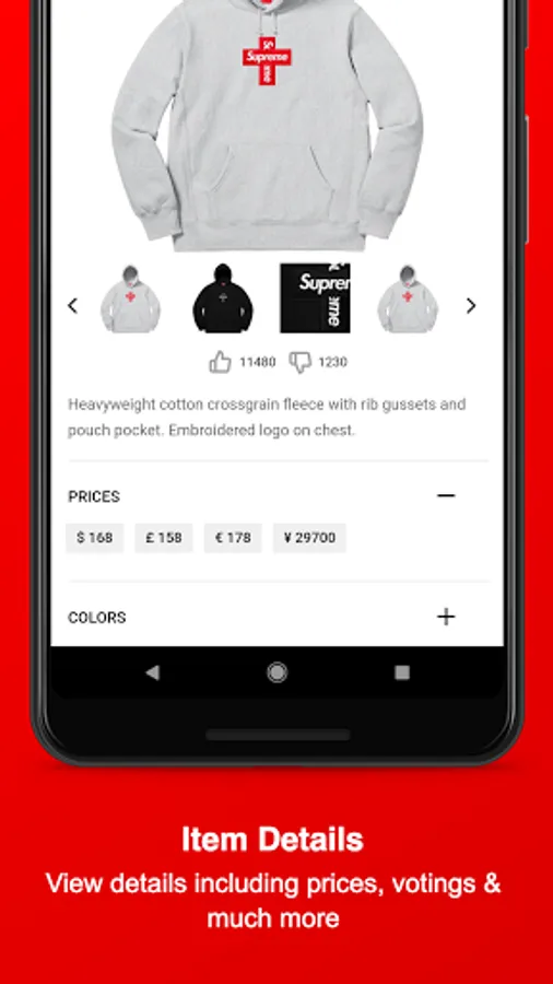 Stay informed about Supreme and download this Fan-App - Find out what might be dropping on Thursday, get notified about Restocks of already sold-out items, view which item sold-out the fastest, upvote your favorite Season items, dig in the item history of Supreme, attend awesome Giveaways & get to meet new people and communicate with the Supreme community and culture.