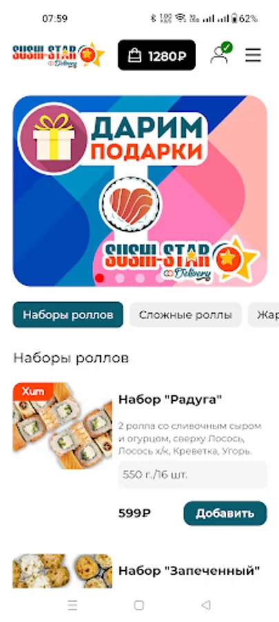 Sushi-Star is the delivery of delicious Japanese cuisine in Nizhny Novgorod and Dzerzhinsk. In our menu you will find a rich selection of dishes for every taste. Sushi and rolls, sets and sets, salads, drinks, free menus, profitable promotions and gifts - all this and much more in our application.