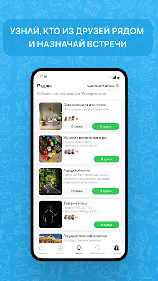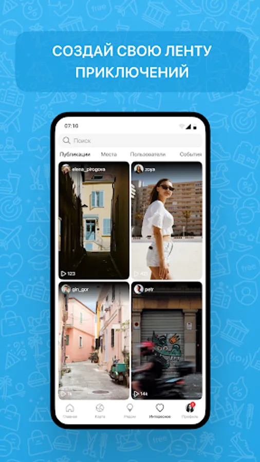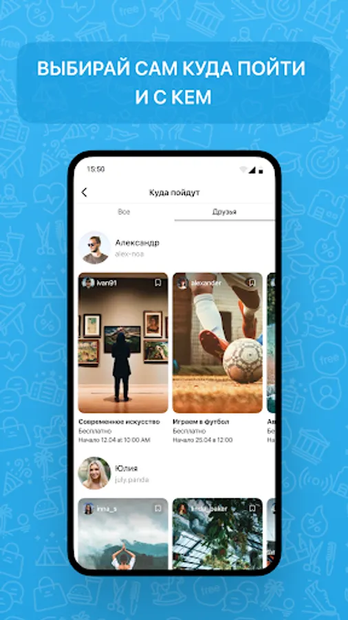 Fill your life with interesting events, in the feed you will always find events for every taste. In addition, with us, everyone can organize their own event, which will be known to all residents of the city.